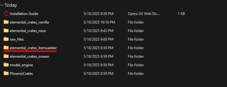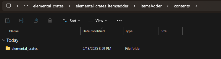 Open the folder, and find the **elemental\_crates** folder inside the contents folder of ItemsAdder.