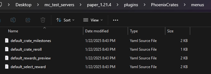 All the crate menus you can customize for the plugin are located in the menus folder of Phoenix Crates. These menus are: