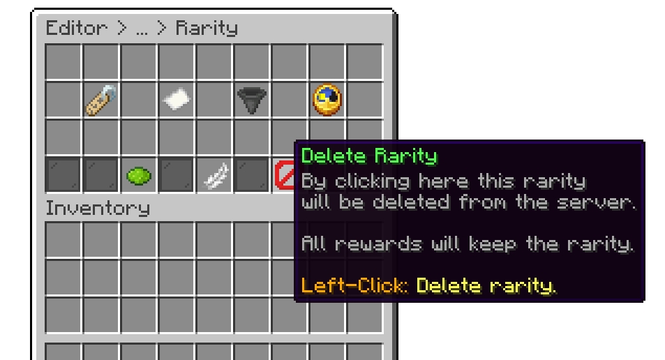 This option allows you to permanently delete a rarity. Note that selecting it will first open a confirmation menu before the key is deleted. Additionally, the rarity will still be attached to a reward/key.