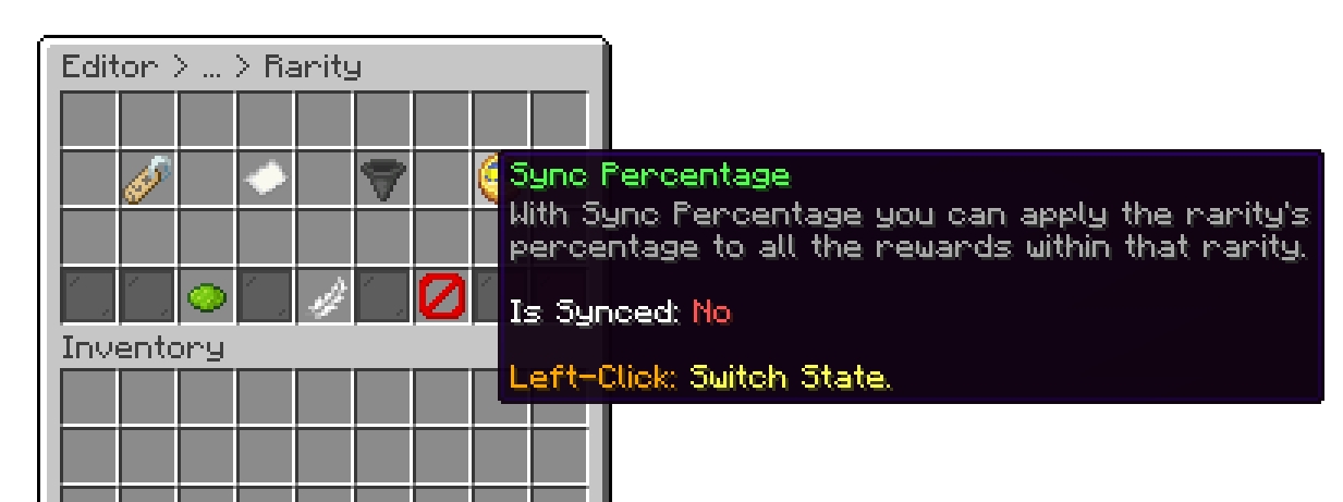 When you enable percentage synchronization, any reward attached to that rarity will use the percentage you have already set.