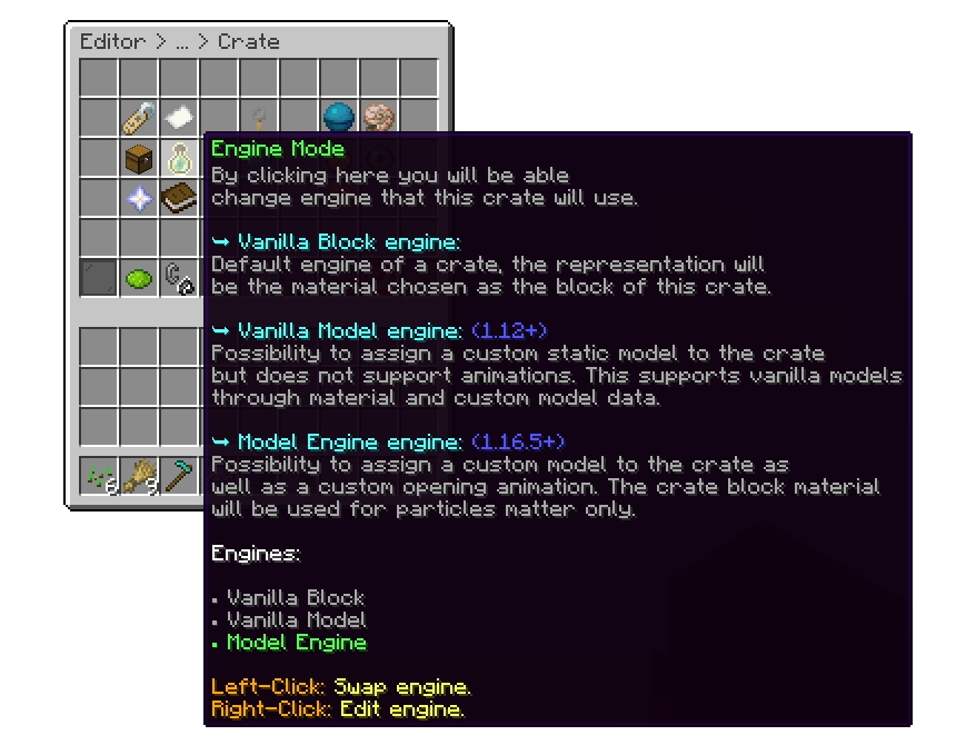 With this engine, you can use models imported via Model Engine as your crate models. We've streamlined the process to make it as simple as possible, allowing you to edit your models directly through the in-game editor, making your life easier.
