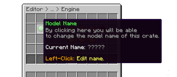 The first step is to assign the model name for your crate. The model name is the ID of the model you've imported via Model Engine. For example, if the model ID is bat_crate, you should select the bat_crate bbmodel