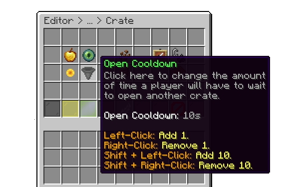 With this option, you can set a cooldown for the crate, requiring users to wait a certain amount of time before opening it again. There is no maximum value, but the cooldown must be specified in seconds.