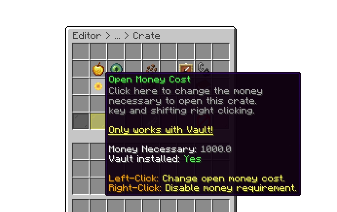With this option, you can set a specific amount required for users to open a crate. If the value is set to 0, this option is disabled.