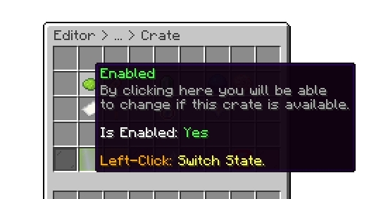 With this option, you can disable the crate. The crate will remain in its location and stay registered, but users will not be able to open or preview it.
