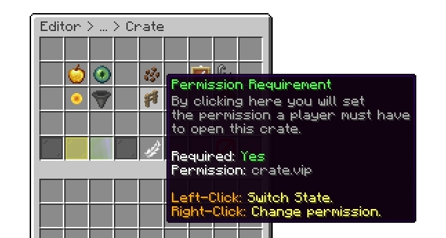 With this option, you can assign a permission that restricts crate access to users who have the specified permission.