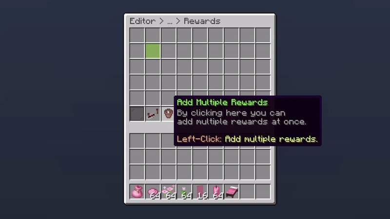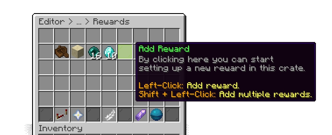 If you don’t want the hassle of adding multiple rewards to your crate one by one, you can shift left click on the glass to quickly add multiple rewards with just a few clicks.